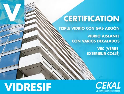 Vidresif arrenca enguany obtenint tres importants certificats per la prestigiosa firma francesa Cekal, la Certificació de triple vidre amb gas Argó, la Certificació de vidre aïllant amb varis decalats i la Certificació VEC (Verre Exterieur Collé) vidre aïllant estructural.
