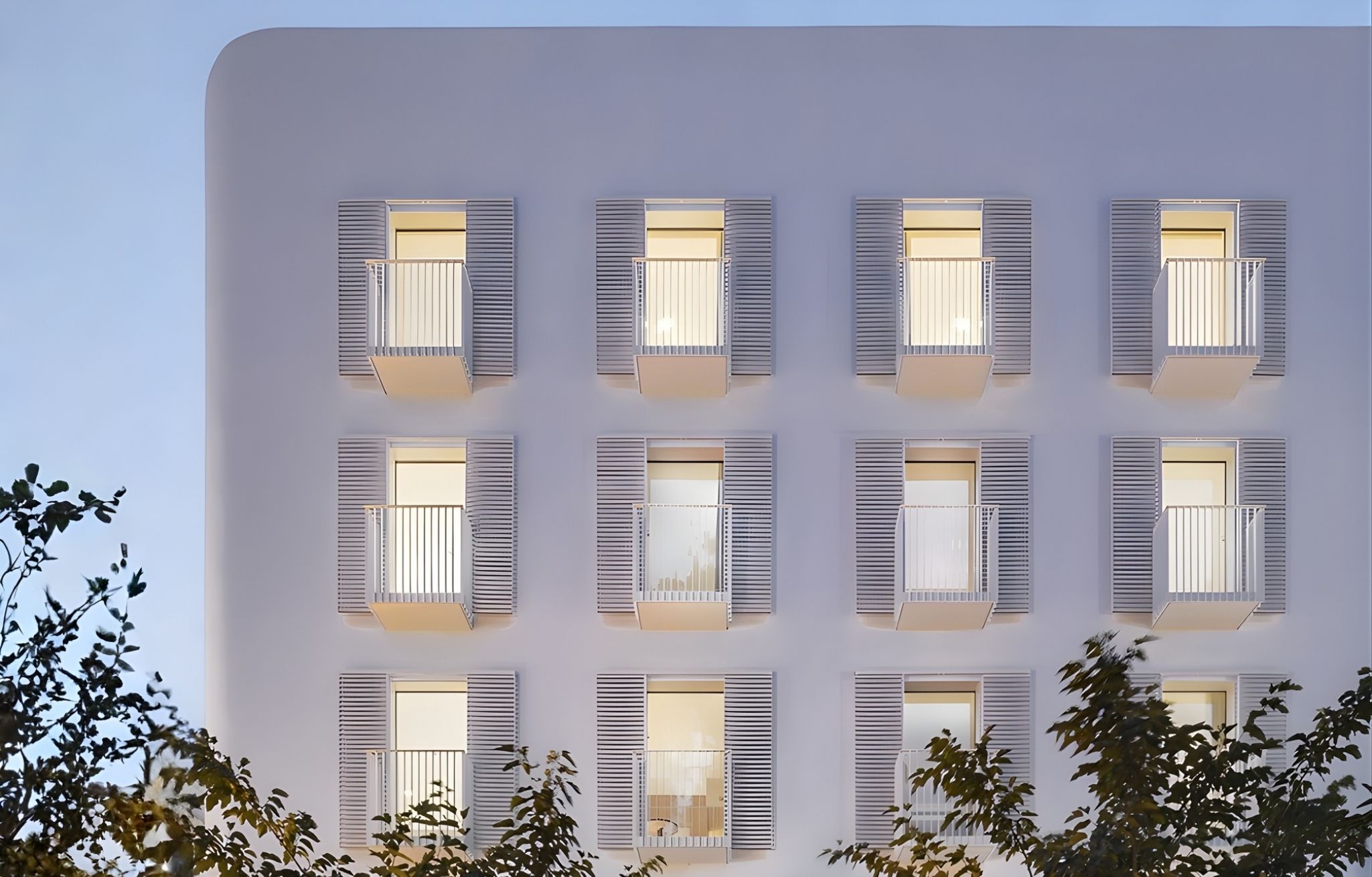 Iniciamos el mes de abril con este elegante hotel, firmado por el estudio de arquitectura OAB, que destaca por su sobria y atemporal fachada en un impoluto blanco.