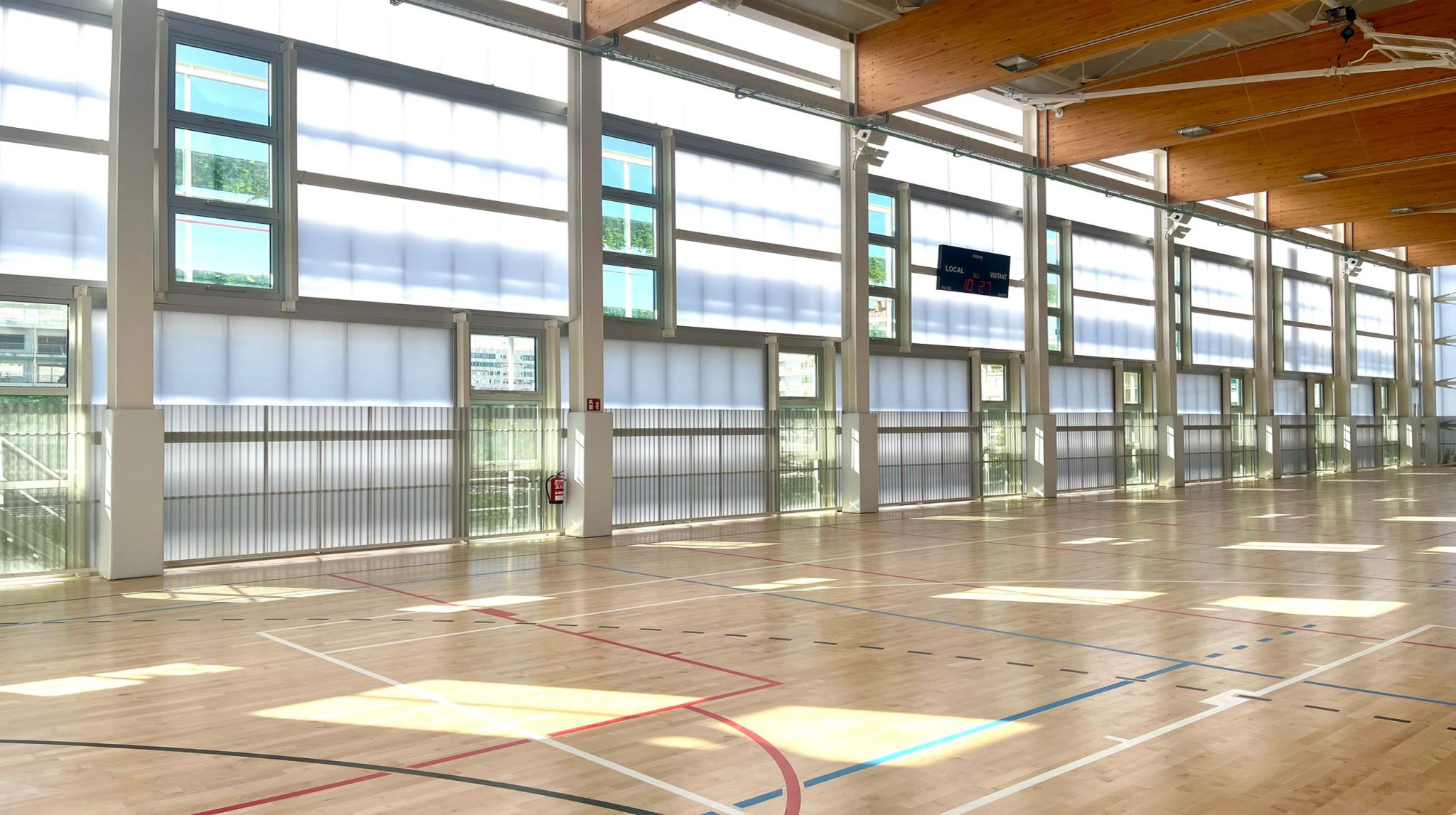 Los vidrios técnicos de RIOU.Vidresif han tenido un papel clave en la concepción del nuevo pabellón deportivo. Conseguir un espacio para el deporte, que no resuene en su interior y que ofrezca una amplia luz natural, a la vez de un óptimo aislamiento térmico y eficiencia energética.