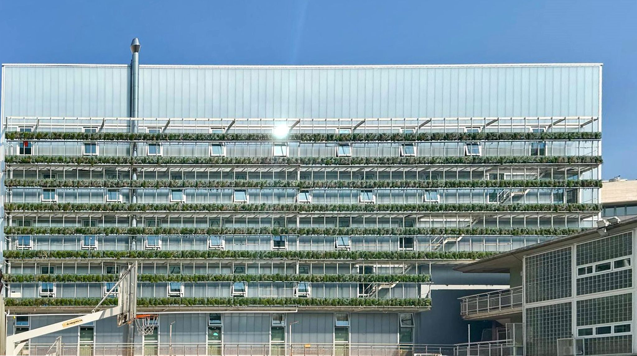 Además del confort acústico, el espacio exigía un alto nivel de eficiencia energética, en línea al objetivo de la ciudad de Barcelona-emisiones cero- Agenda 2030. El proyecto ha buscado reducir al máximo el consumo energético, a través de una cubierta que combina ventanas motorizadas y placas fotovoltaicas, junto a un sistema de climatización de apoyo. Parte de la fachada está cubierta de vegetación, mejorando también el aislamiento y una mejor estética y calidad visual en el entorno urbano.