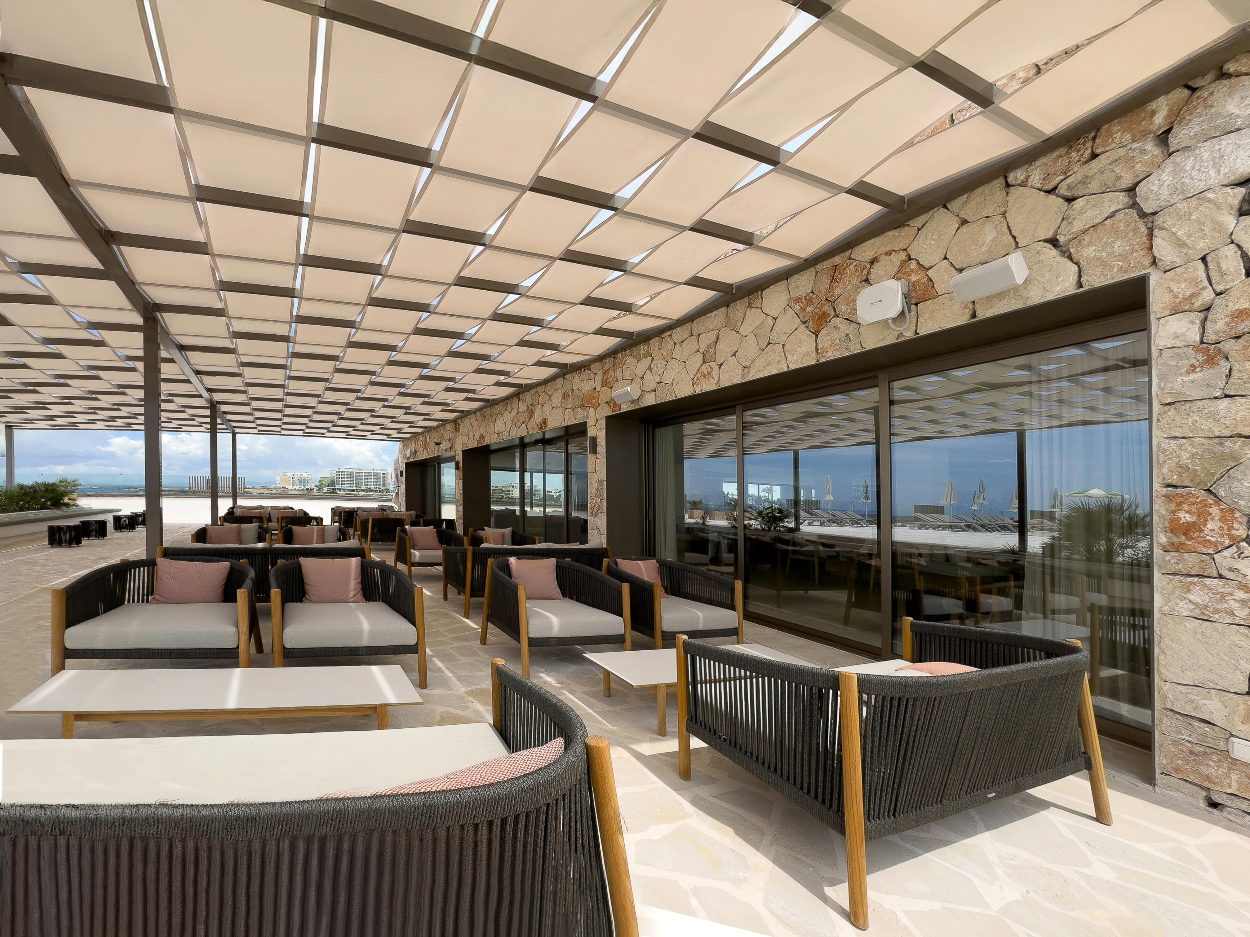 Un total de 145 confortables habitacions i suites, juntament amb unes exclusives instal·lacions comunes amb tots els serveis, wellness, piscina, restaurant, rooftop,… sota un disseny mediterrani acurat on domina la pedra i el vidre, que connecta amb les magnífiques vistes al mar.