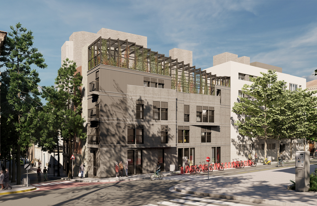 Un nou bloc ecoconstructiu d’habitatge públic per a joves, ubicat en un dels cèntrics carrers del Barri de Poble-sec, a Barcelona.