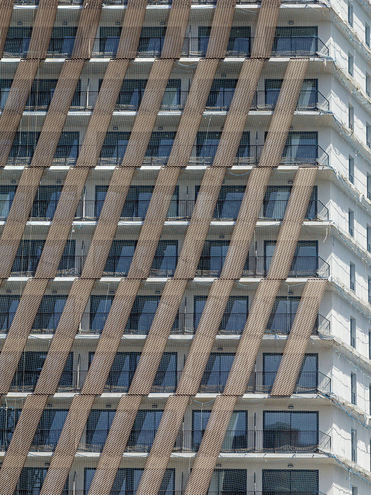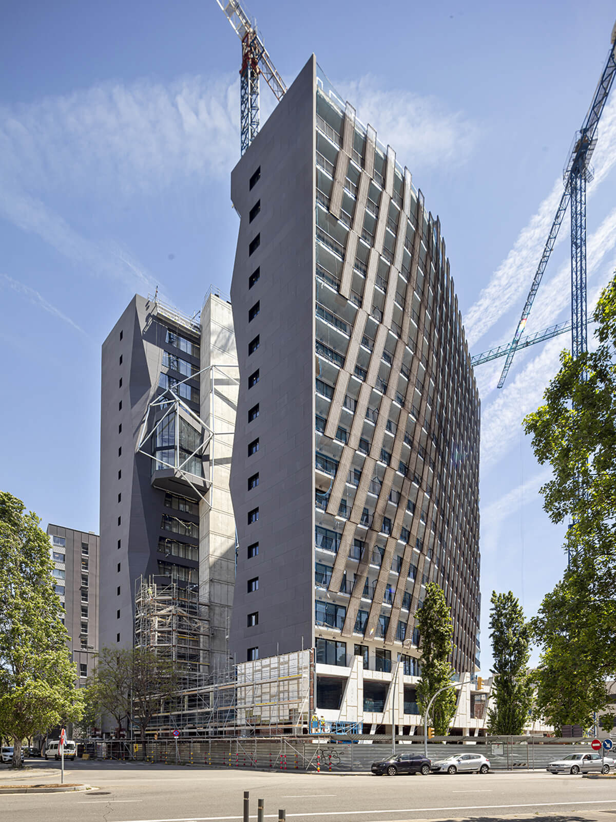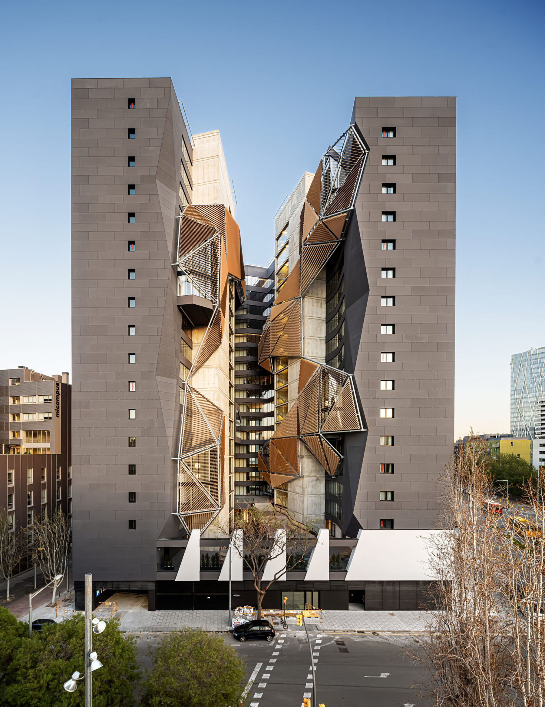Un moderno bloque de 17 plantas diseñado por los estudios de arquitectura aZCON architectures, HYBRIDa Arquitectes y D388, con Talleres Inox SA como fachadista y vidrios técnicos Vidresif.